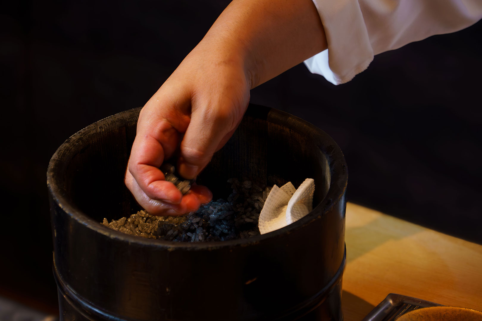 「麻布 黒しゃり」は、インナービューティと鮨が融合する新感覚の鮨屋です。白砂糖を使用せず、ヤシ殻活性炭を配合した世界初の黒しゃり。ヘルシーさを意識しながらも、職人の技を感じる鮨、一品料理など、多彩なこだわりをご堪能いただけます。